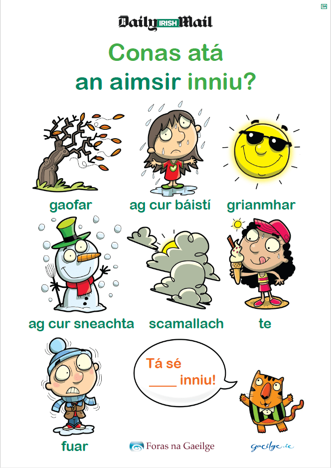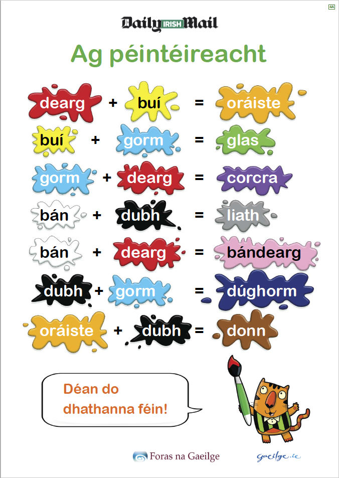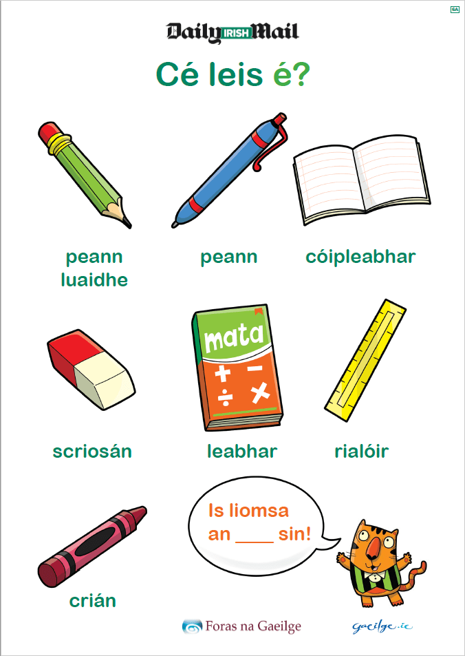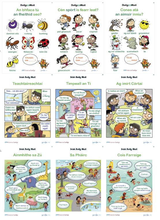 Research, develop and produce 6 educational wall chart posters featuring useful Irish words for young children (age 4–8yrs) and their teachers (K1–G2).