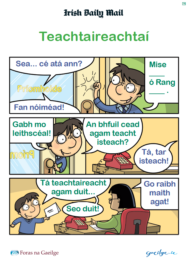 Create a follow-up collection of 6 posters featuring useful daily phrases for older children (age 8–12) and their teachers (G3-G6) with some crossover to early post-primary students (G7-9).